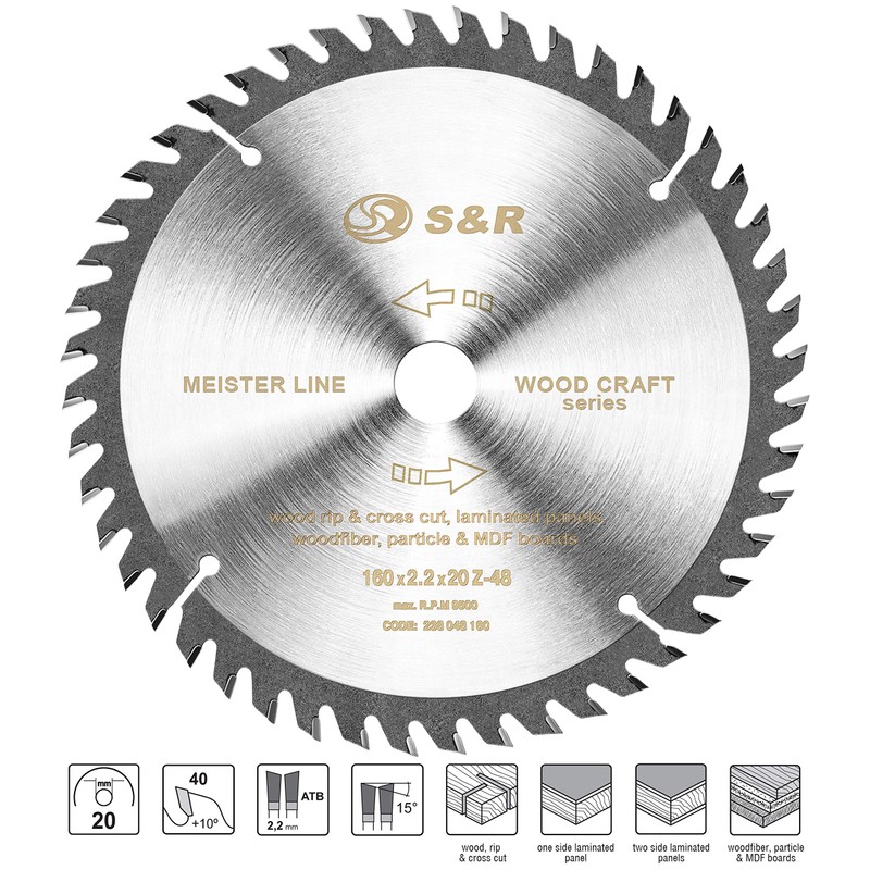 - Professional quality for long-lasting professional use S & R Hohleistungs circular saw blade wood force/Woodcraft/