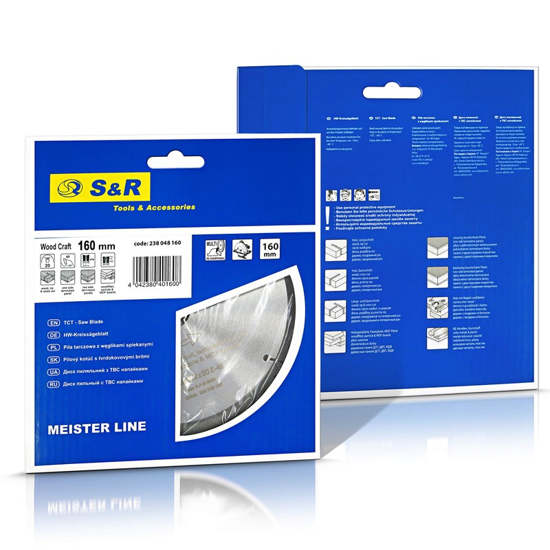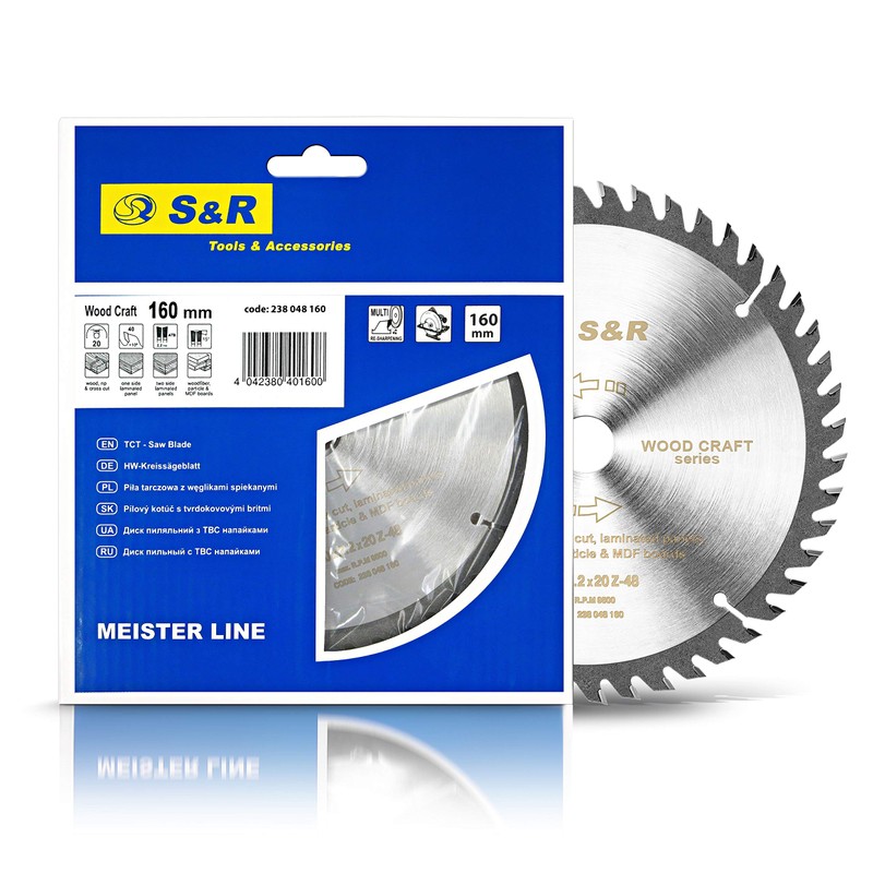 S&R Circular Saw Blade 160 mm x 20 mm x 2.2 mm "Wood Craft" Reducing Ring 16 mm Saw Blade for Wood in Professional Quality