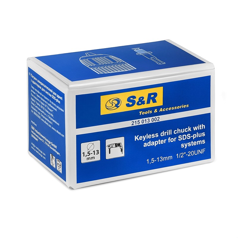 - 🧰 Quick-Release Chuck: S&R keyless chuck for 2-13mm bits with a 1/2-20 UNF thread, including an SDS-plus adapter, perfect for SDS drills.