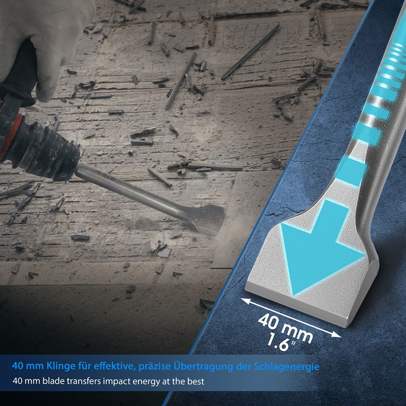- S&R Heavy Duty Tile Chisel SDS-MAX 250 x 40 mm bent working end, optimized geometry. Professional quality MADE IN GERMANY