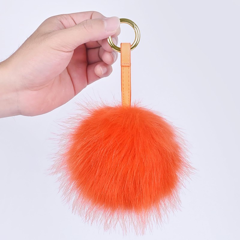 S.ROMZA Pom Pom Keychain Artificial Faux Fur Ball Keychains Fluffy Keychain Pom Pom Bag Charm for Hand Bag Backpack Pendant (Orange)