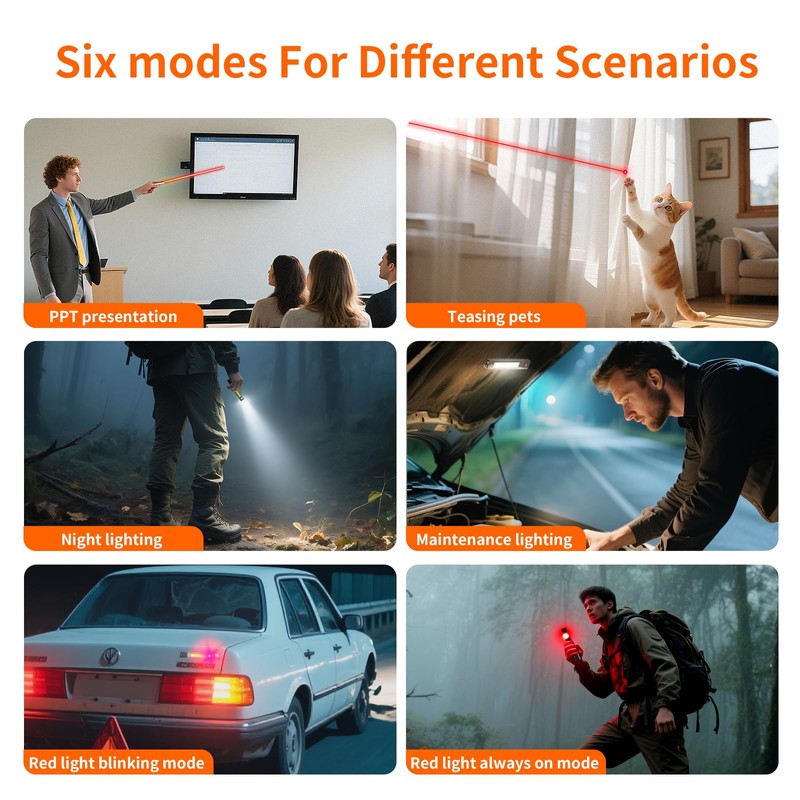 - 【Multi-Function Light Source】This EDC flashlight is equipped with four light sources and six mods: COB white light, red light, and an LED spotlight,a infrared.Whether you're working, handling an emergency,pet play or exploring outdoors, this flat flashlight is a dependable lighting companion.