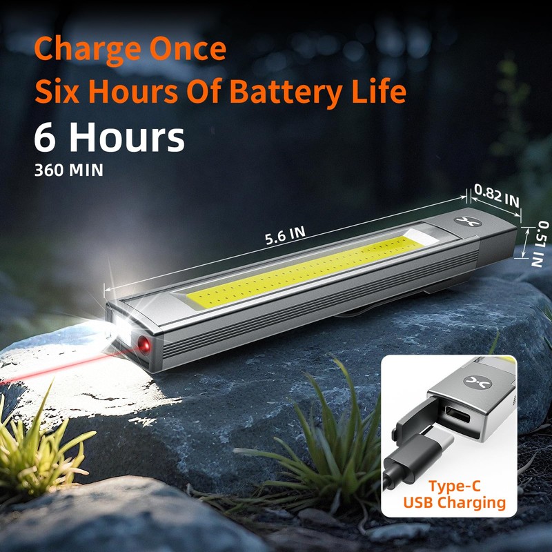 - 【Lightweight & Portable】This work light is designed in stick shape that measures 5.6*0.7*0.4in,weighs only 1.6oz which makes it very pocket-sized and easy to daily carry.