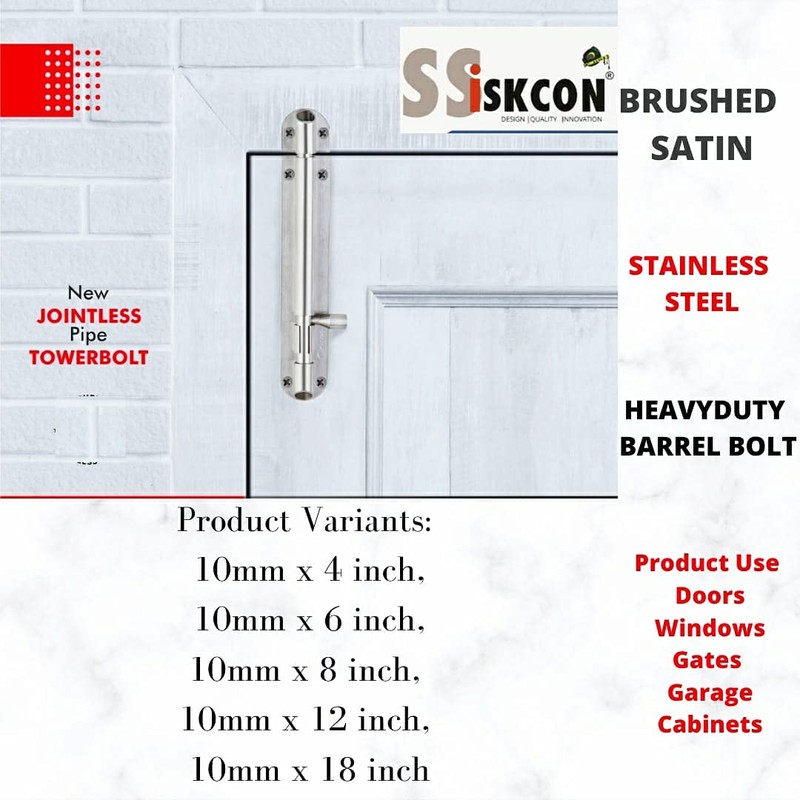s siskcon design quality innovation s siskcon design quality innovation Stainless Steel Barrel Bolt Premium Series 10mm x 12 inch Solid Handcrafted Design Sliding Door Lock Satin 32D with Screws Pack of 1