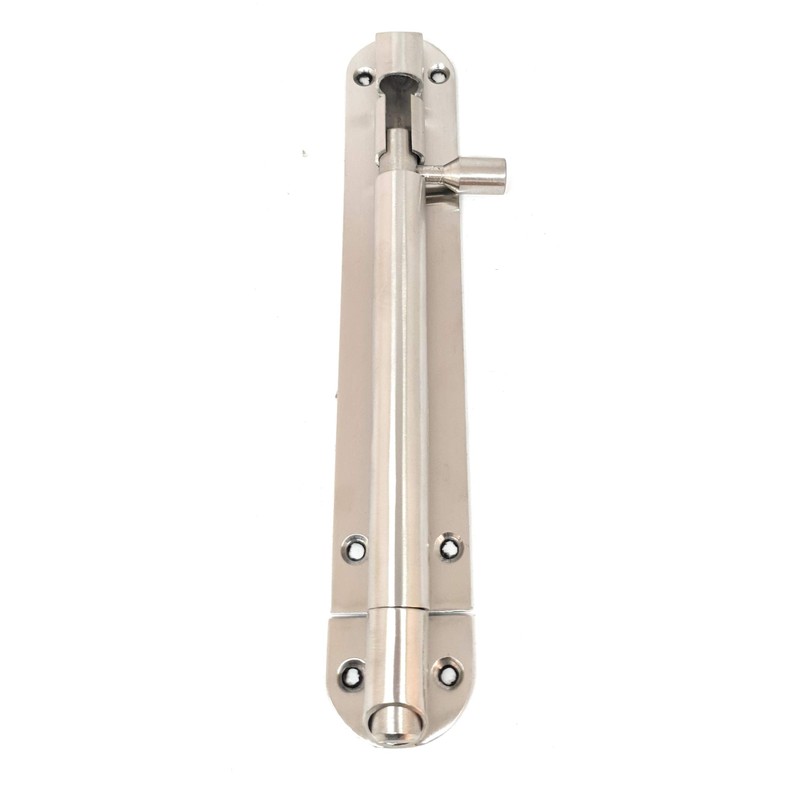 - PRODUCT DETAILS - 100% Stainless Steel Pack of 1 Barrel Bolt with lock section + 6 Stainless Steel CSK Screws (Philips Drive), 32D (630) 10mm solid slide rod x 8 inch Round Radius Barrel Bolt