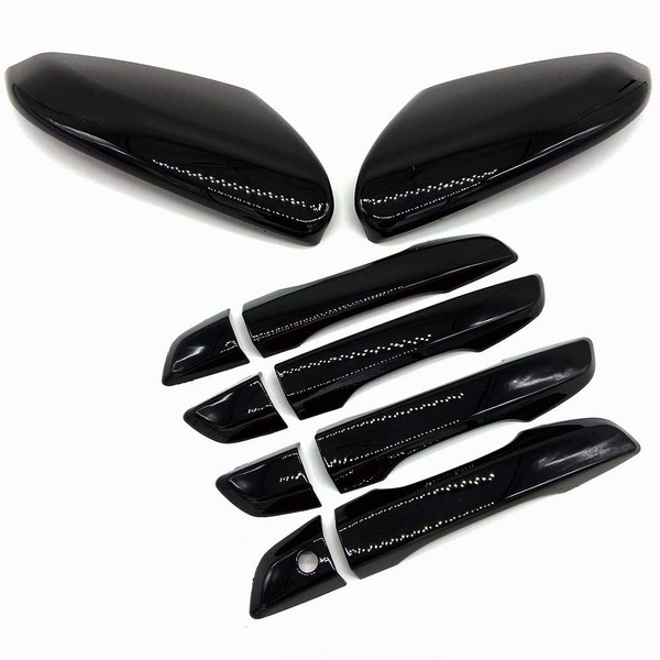 S SIZVER Glossy-Black Series Door Handle+Mirror Covers Overlay Combo Set Compatible with 2016-2020 Honda Civic