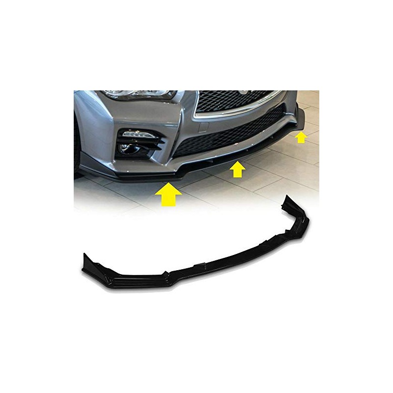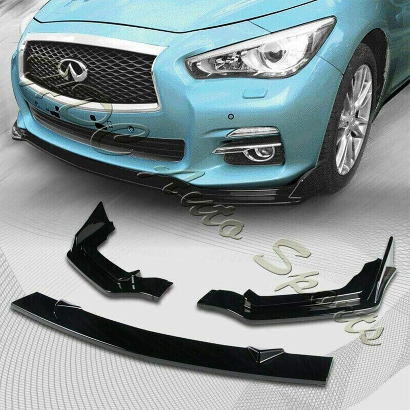 S SIZVER Painted Black Front Bumper Body Kit Spoiler Lip 3PCS Compatible with 2014-2017 Q50 Sport Model ONLY