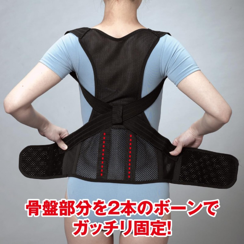 - ボーンは取り外し可能でハードに固める時はボーンを入れ、ソフトに着用する場合は抜いて使用できます。ベルト調節は腰部、背面クロスべルト両方、自在に開整が出来ますので、その日の体調に合わせ調節可能です。