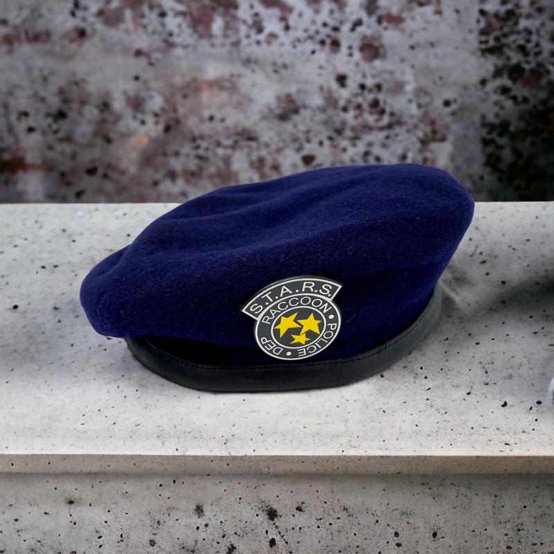 S.T.A.R.S. Raccoon City R.P.D. Army Officer Beret in Navy Blue with S.T.A.R.S. Pin (57cm Circumference)