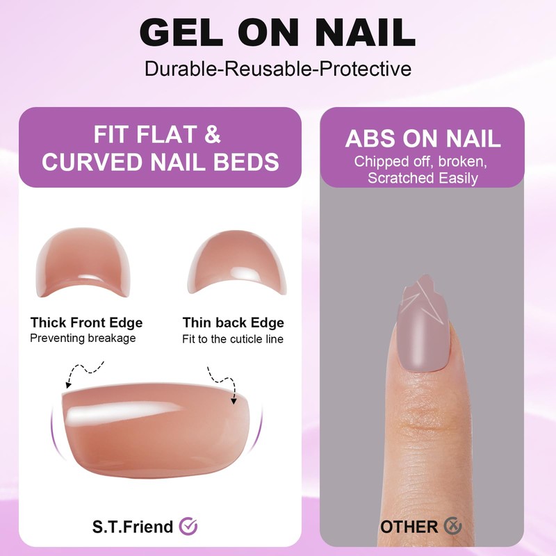 - Stick on Nails: Simply treat your natural nails, apply the included gel adhesive evenly, and press on the faux nails for an instant,Achieve a salon-quality at home in under 5 minutes! for a polished, sophisticated look.