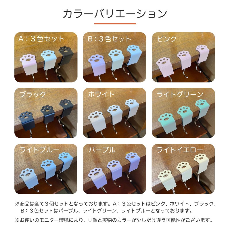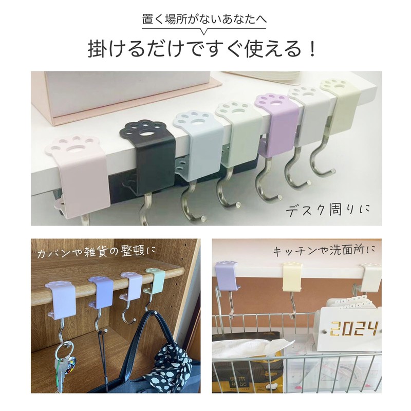Convenient hook that can be easily attached to your desk or desk. Set includes 3 hooks and features a cute animal motif design. The design features a cat paw and rabbit face that will match any decor and make you feel warm every time you use it. Fashion and lovely design make your room or office more attractive.