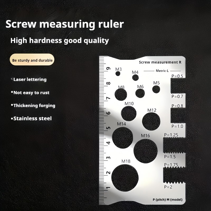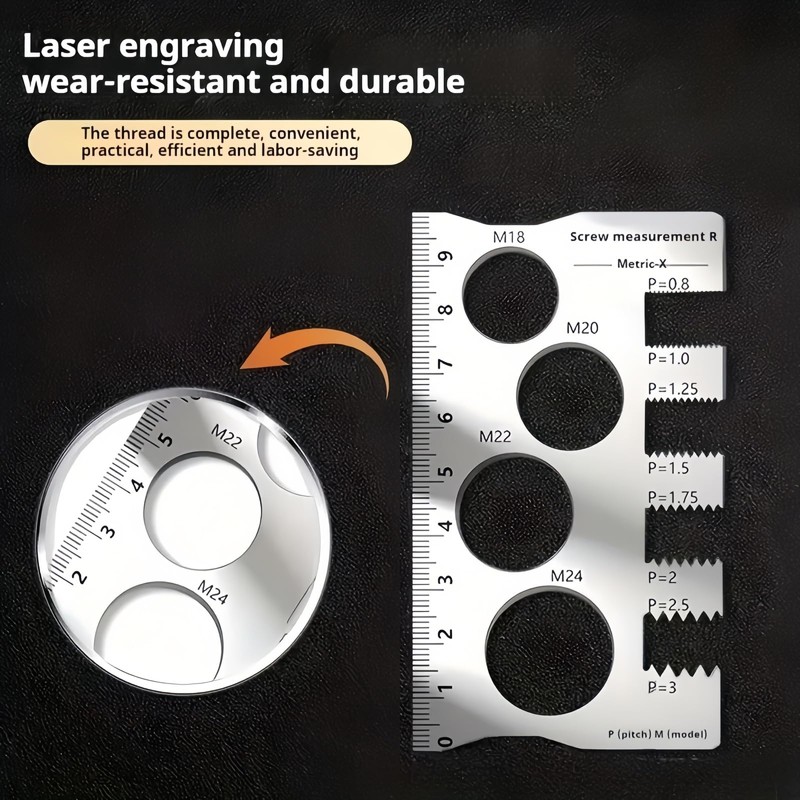 - PRECISE BOLT & THREAD MEASUREMENT:This s/tainless s/teel double-sided bolt gauge card provides accurate measurements for both metric and imperial sizes.The clear markings help identify bolt size gauge and thread pitch gauge quickly.Two shape options (irregular and square) fit different measuring needs
