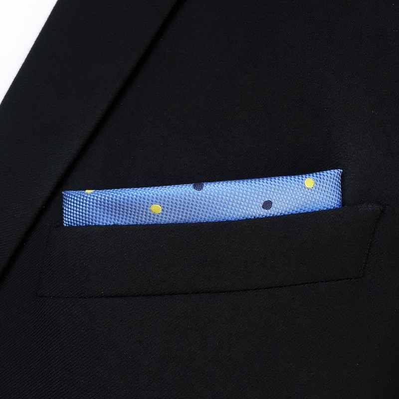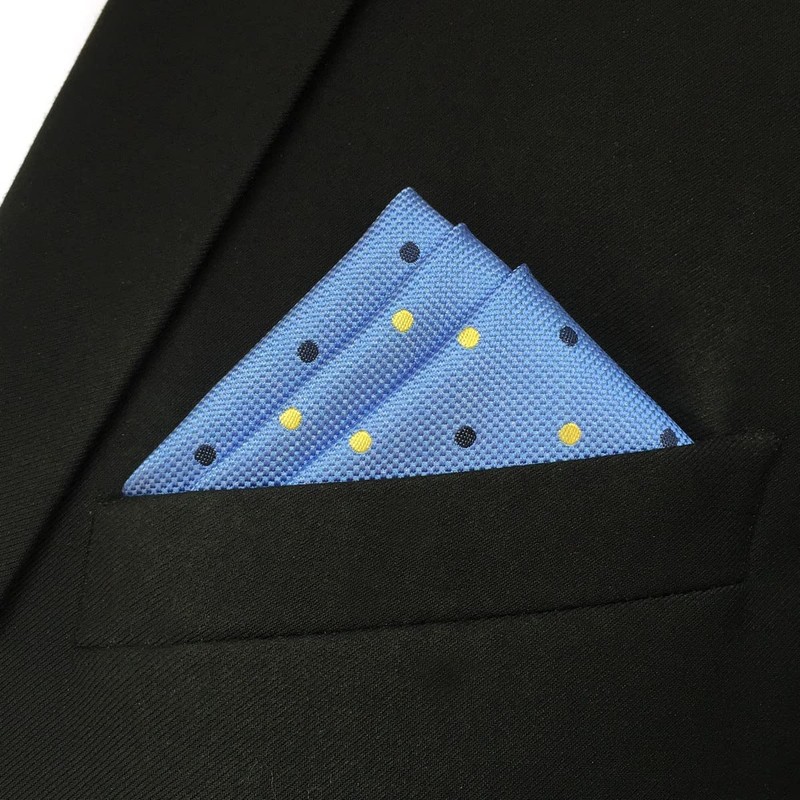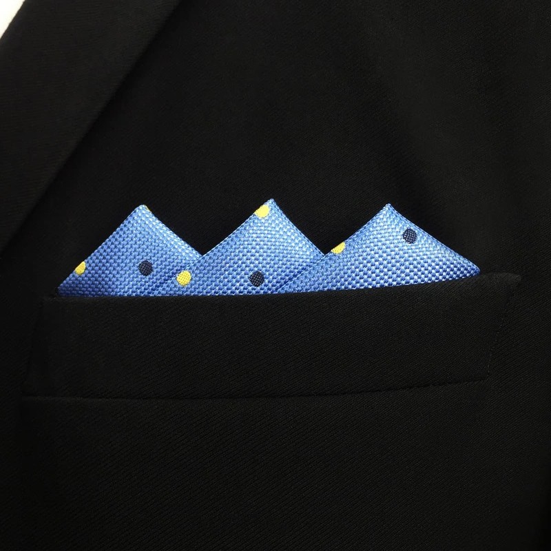 S&W SHLAX&WING Dot Blue Azure Silk Pocket Square Formal Use Men's, blue