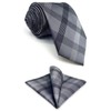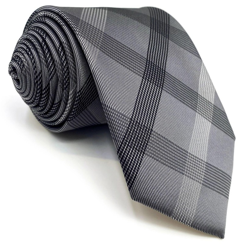 S&W SHLAX&WING Ties for Men Necktie Gray Check Extra Long Extra Long Size 63" with Pocket Square