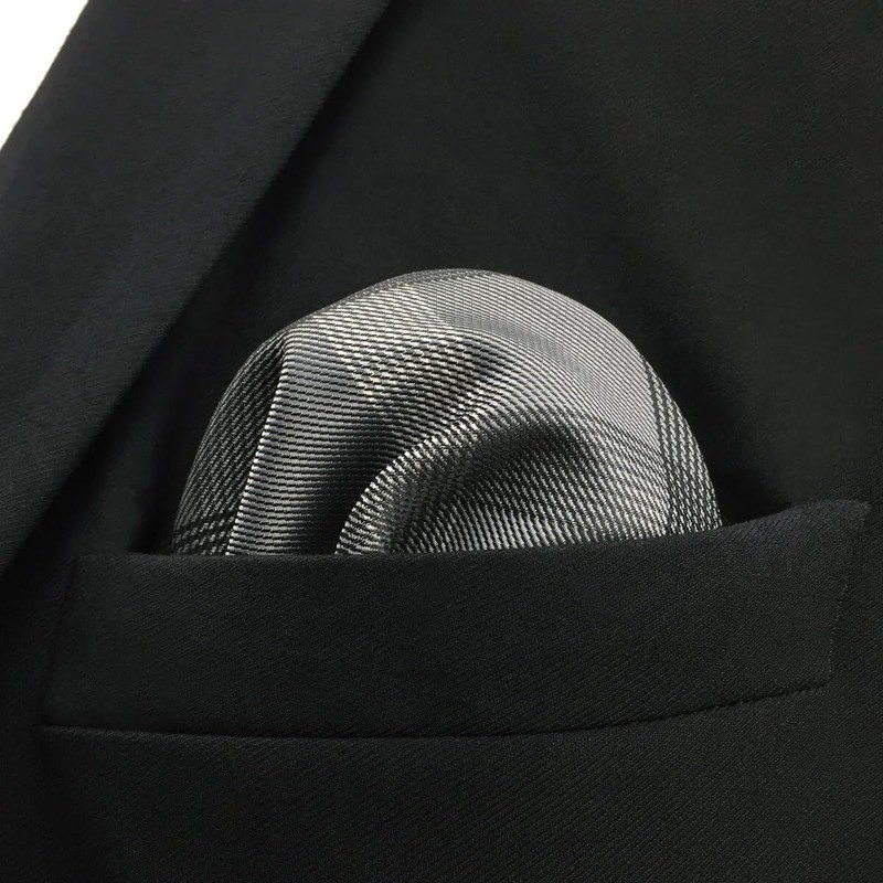 - Necktie size: 63" x 3.5". Pocket square size: 12.6" x 12.6". The pocket squares is full size and will not slide down in your jacket pocket. You can easily fold any shapes you like.