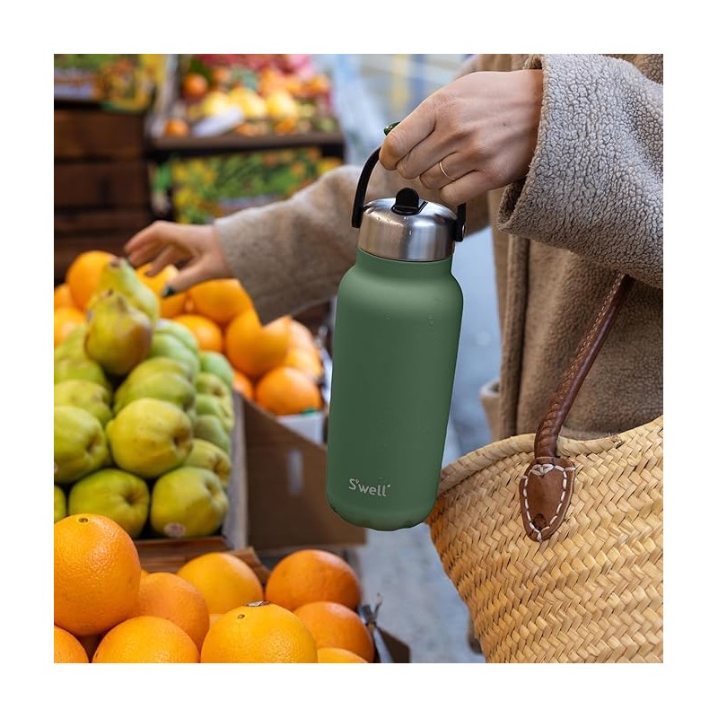 S'well - Recycled Stainless Steel Explorer with Flip Straw Lid, Triple Layered Vacuum Insulated Containers Keeps Drinks Cold for 42 Hours and Hot for 10 (32 oz, Green Jasper)