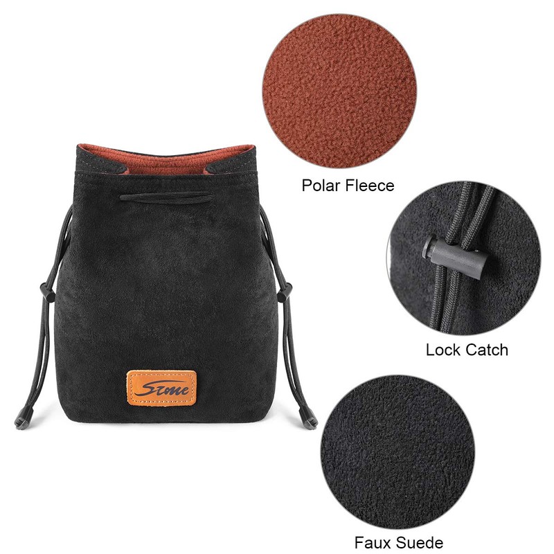 • ✤Material: Soft faux suede outside + Polar fleece interior + Drawstring closure; High-quality camera case with a good feeling and convenient to carry