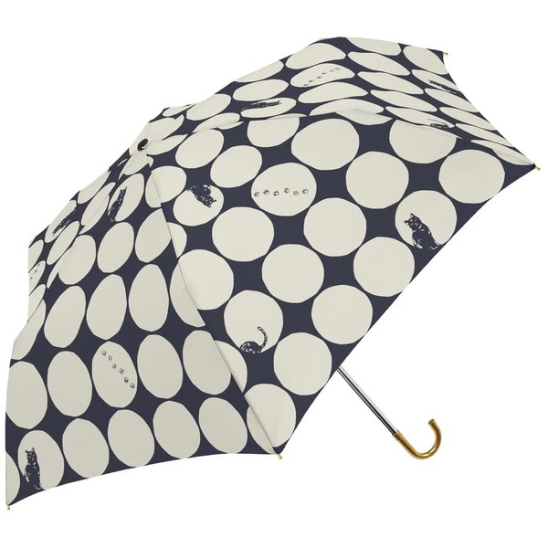 S21001 Folding Umbrella, 21.7 inches (55 cm), Wind Resistant Mini, Large Polka Dots and Cats, Off White