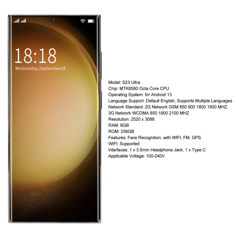 1、Ultra Large Screen, Slim Body: Featuring a 6.8 inch Incell ultra HD screen and a 1cm ultra thin body, the phone offers a wide visual experience with its 2520x3088 high resolution display. Explore every detail with vibrant colors and amazing clarity, maximizing your visual experience. 2、Powerful System and CPU: For Android 13.0 system and an MT6753 octa core CPU built on a 6nm processor. This architecture provides ample fluidity and responsiveness to run multiple applications, meeting your work efficiency and entertainment needs. 3、9000mAh Large Battery Capacity: Equipped with a 9000mAh battery, the smartphone offers exceptional battery life, exceeding expectations with up to 17 hours of talk time, 24 hours of music playback, and 6 hours of gaming. Intelligent AI battery management reduces excessive cache to save more power and extend standby time. 4、Enhanced Functionality: Supports 5G WIFI for easier office and entertainment use, Bluetooth 5.0 for smoother connectivity, built in FM radio with tuning function, and advanced GPS navigation for worry free travel. 5、Network Frequency Support: Supports 3G network WCDMA 850 1900 2100 MHZ, 2G network GSM 850 900 1800 1900 MHZ, and the product is fully unlocked. However, please confirm with your local SIM card provider if they support the network frequency of this product before purchasing.