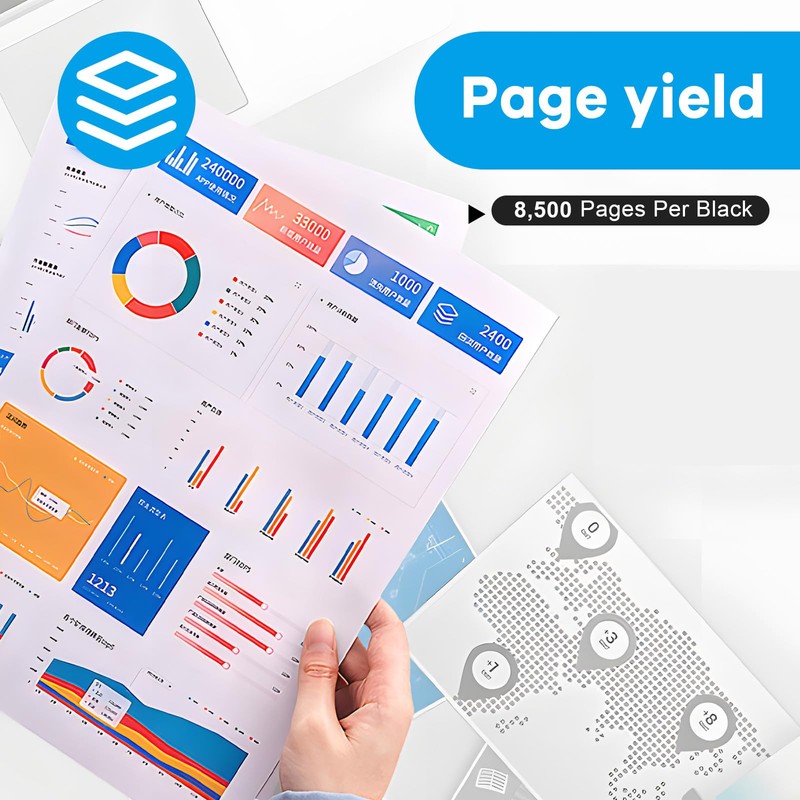 - High Yield: 8,500 pages per black toner S2830