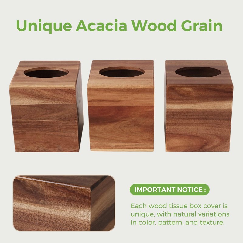 - Natural Wood Grain for Home Decor: The unique wood grain makes each wooden tissue box cover truly one-of-a-kind, offering a warm and natural decor accent. Ideal for bathroom tissue holders or as a cover for tissue boxes in your office or living room.