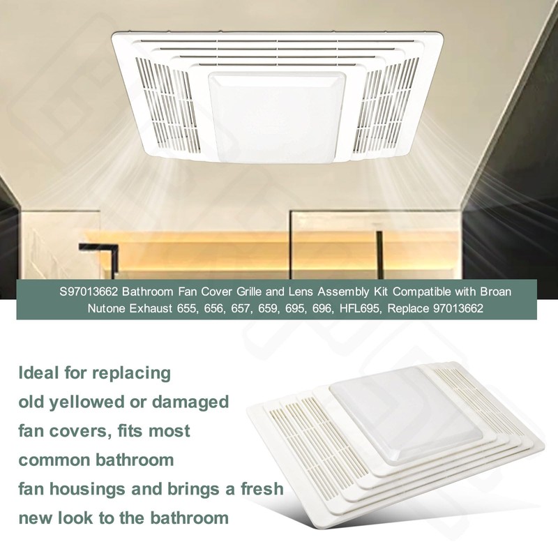 S97013662 Bathroom Fan Cover Grille and Lens Assembly Kit Compatible with Broan Nutone Exhaust 655, 656, 657, 659, 695, 696, HFL695, Replace 97013662