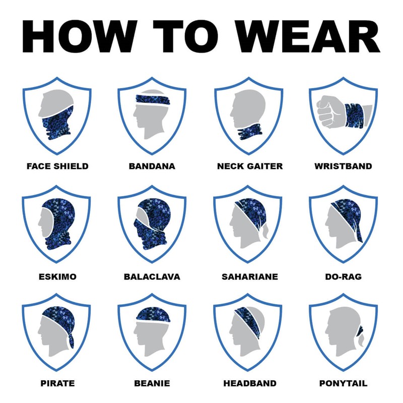 • The bandana is washable, waterproof, breathable, very elastic, dirt-repellent and dries quickly.