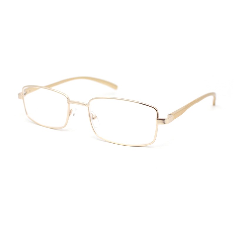 SA106 Classic Metal Rim and Arm Narrow Rectangle Reading Glasses Gold +2.0