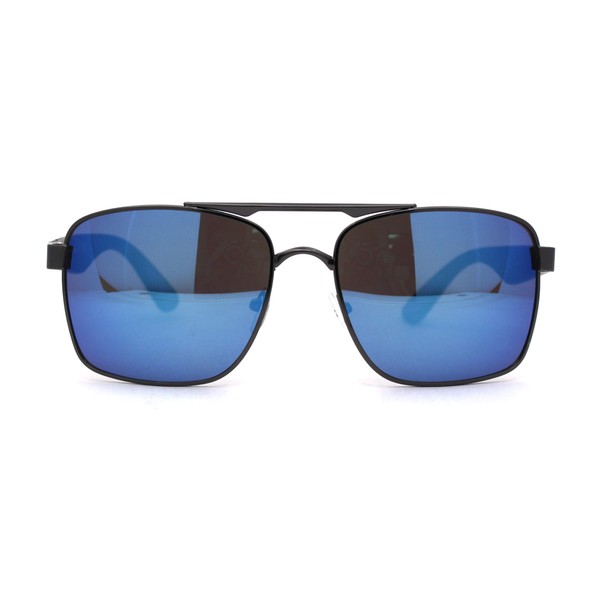 SA106 Mens Air Force Rectangle Mirrored Lens Pilots Sunglasses Gunmetal Blue Mirror