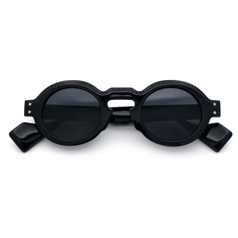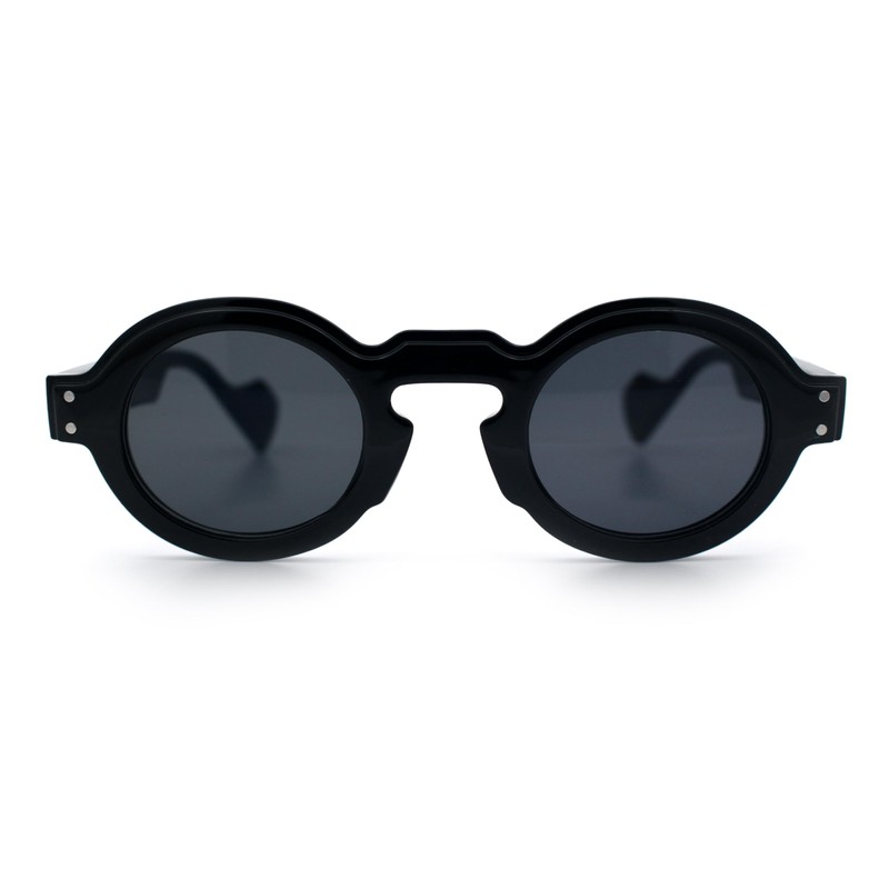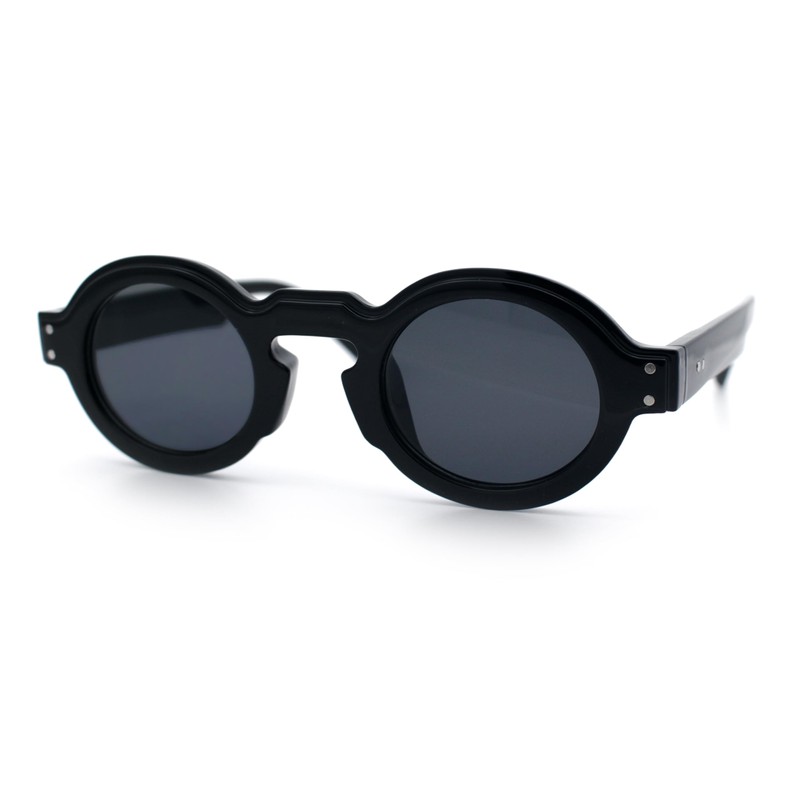 SA106 Retro Nerdy Hipster Round Thick Horn Rim Plastic Keyhole Sunglasses All Black