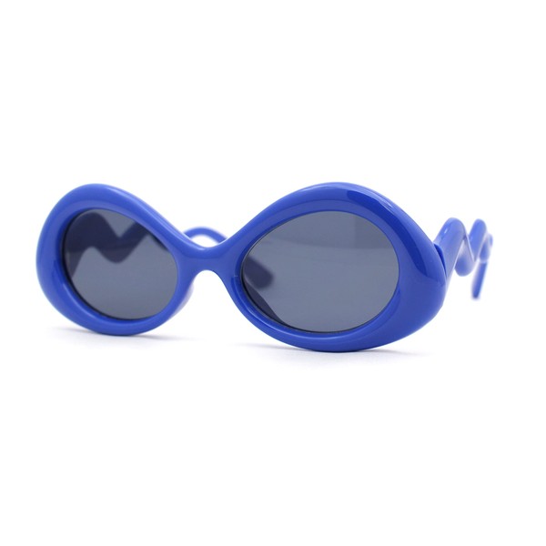 SA106 Wavy Down Temple Upside Down Cat Eye Thick Plastic Sunglasses Blue Black