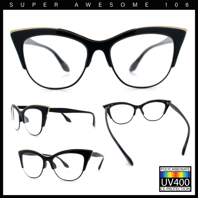 SA106 Womens High Point Squared Half Rim Look Cat Eye Glasses Black