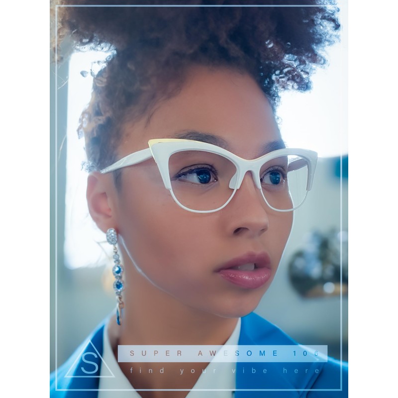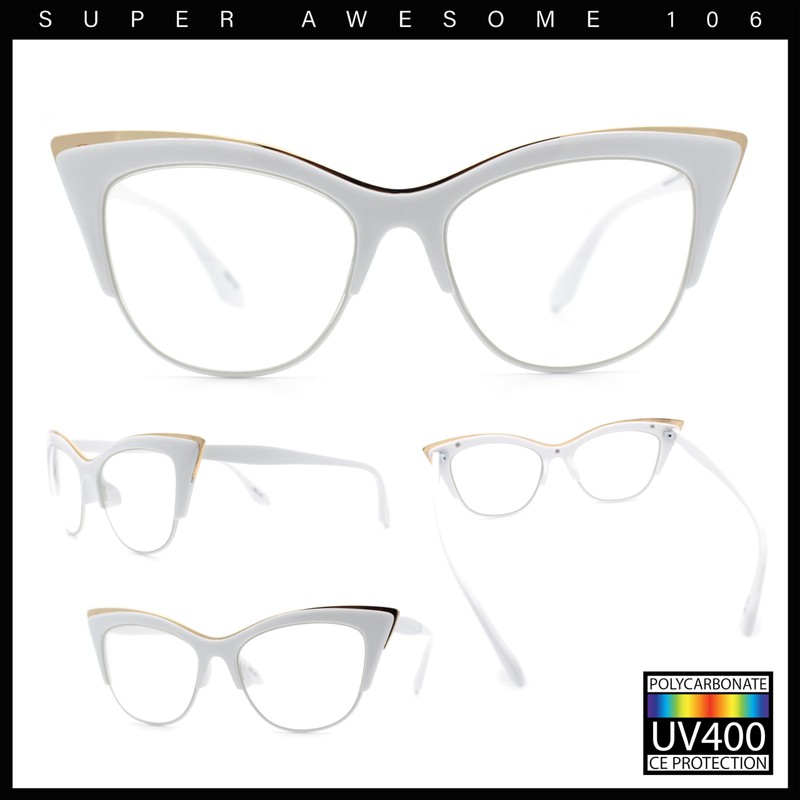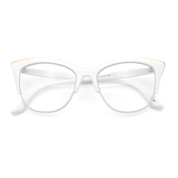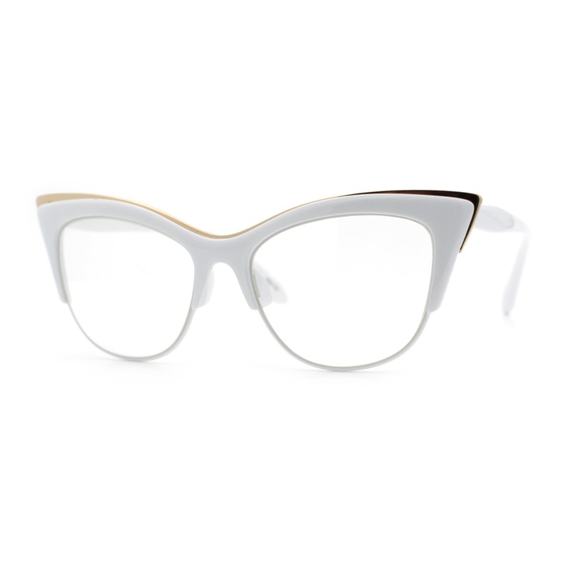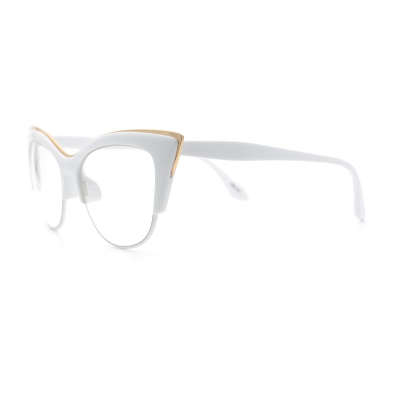 SA106 Womens High Point Squared Half Rim Look Cat Eye Glasses White