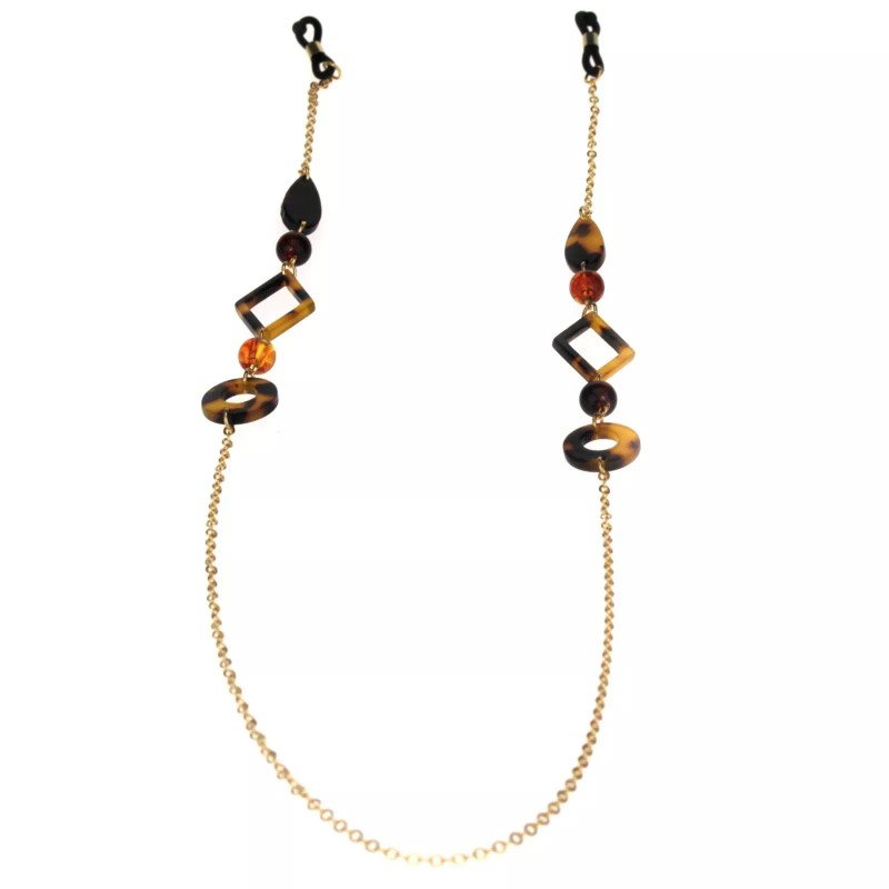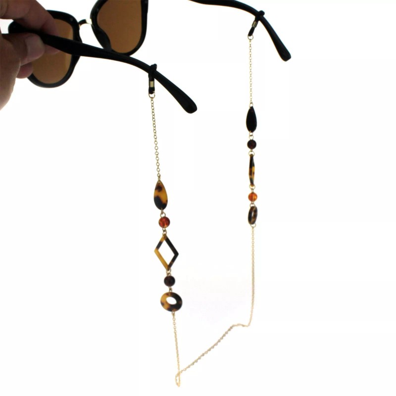 SA106 Womens Tortoise Marble Jewel Pendant Eyewear Glasses Neck Loop Gold Chain