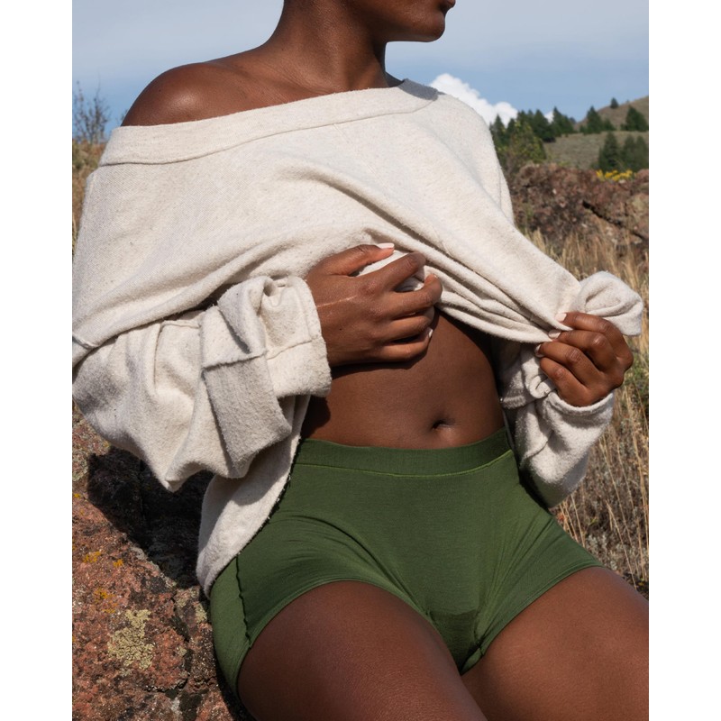 Saalt Comfort Modal Boyshort Period Underwear - Super Absorbency - Comfortable, Thin, and Keeps You Dry from All Leaks (X-Large, Olive Grove)