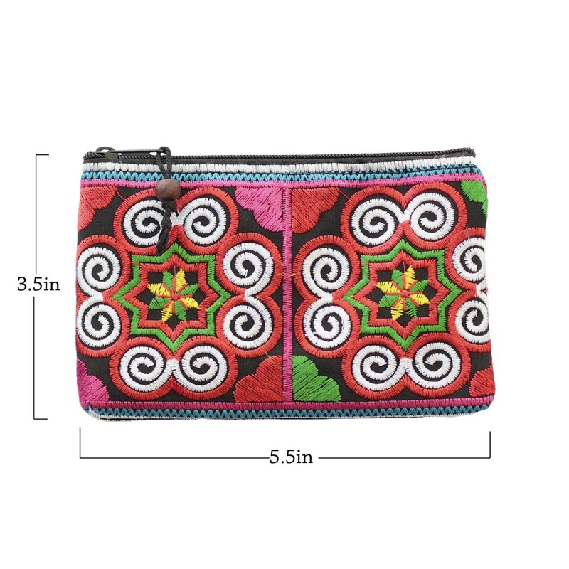 - A unique coin pouch like no other: This embroidered coin purse is handmade by a real Thai artisan, making it truly unique! It's small (5.5in x 3.5in) and lightweight but big enough to hold cash, coins, credit cards, makeup, or any other small items that may be floating around in the bottom of your purse.