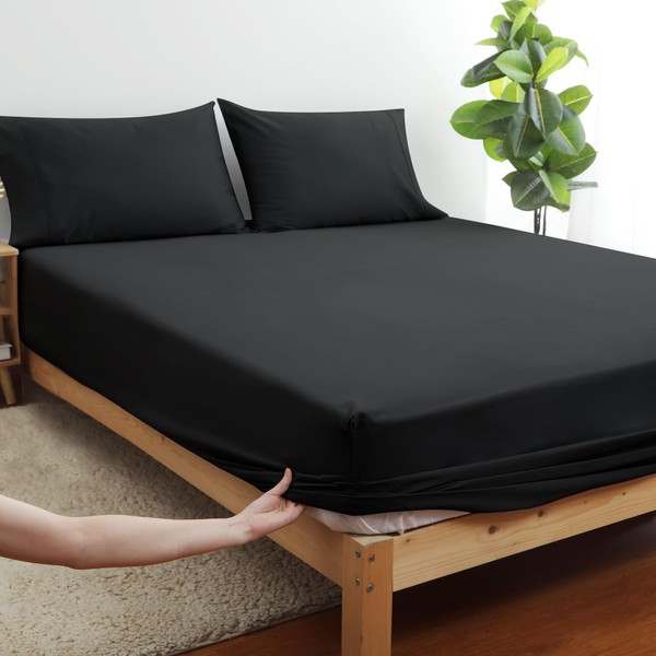 - Sábana bajera ajustable de 1 pieza: sábana bajera ajustable de tamaño matrimonial: 54 pulgadas de ancho x 75 pulgadas de largo con bolsillo de 15 pulgadas de profundidad, color negro