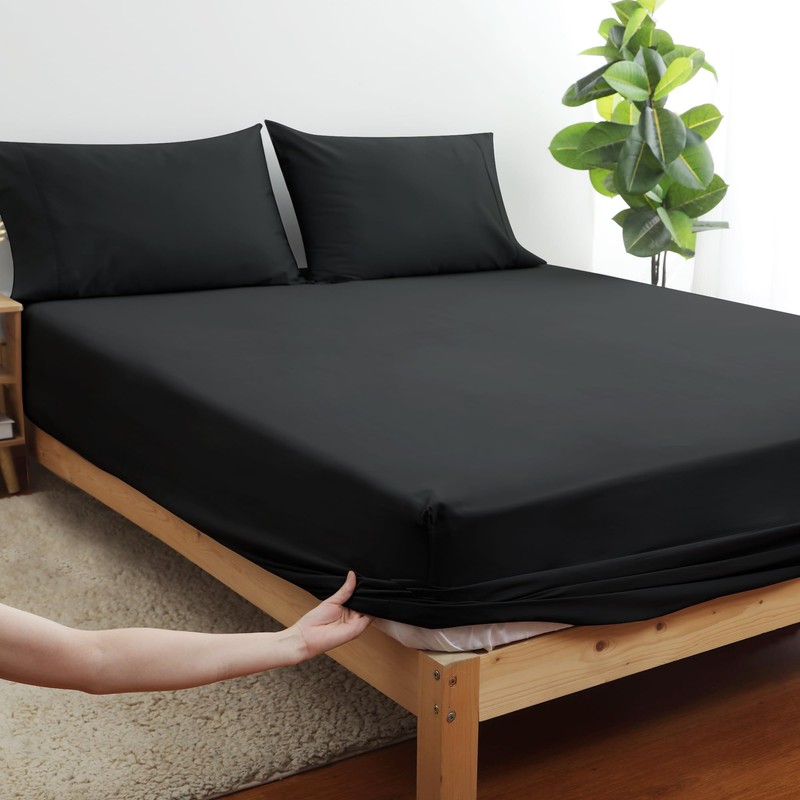 - Corte clásico con bolsillos profundos: las sábanas bajeras totalmente elásticas con bolsillos de 16 pulgadas de profundidad tienen un tamaño generoso para adaptarse a colchones profundos y con parte superior acolchada, lo que te ayuda a evitar que las sábanas desordenadas siempre se resbalen de tu colchón, más conveniente para cuidar.