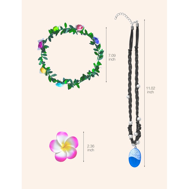 - 4 pieces set contains: Dress, Ocean necklace, Sun flower Clip, Flower headband.