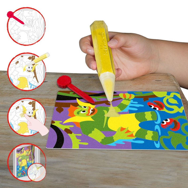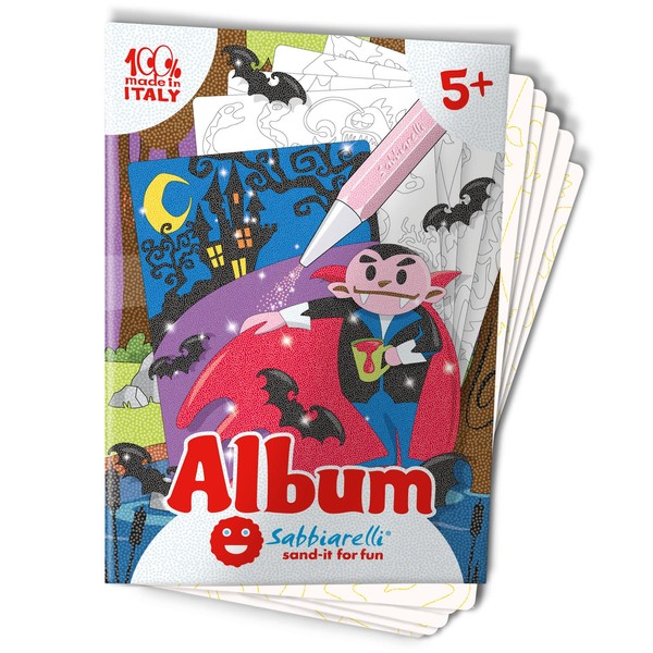 - Product: Album Sabbiarelli with 5 different drawings with Halloween monster characters to paint with sand. 100% Made in Italy