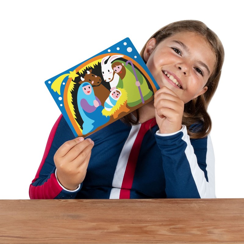 • Contents: 5 pre-glued paper (15 x 20 cm) with different motifs inspired by Christmas (the Santa, the snowman, the tree, the angel, the birth of Christ). This includes instructions to facilitate application