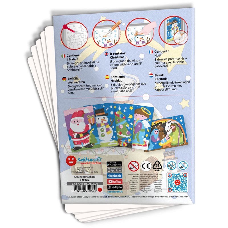 • Product: album Sabbiarelli with 5 different drawings as Christmas motifs, for painting with sand. 100% Made in Italy