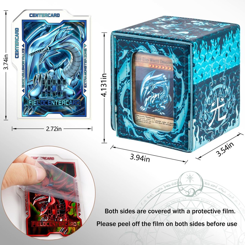 • Novel Design:Deck Box features a unique window design, allowing you to showcase your favorite cards paired with our Card Holder for a personalized display. Included with the box is a Sky Dragon laser decoration card. Also included is a acrylic card divider. Please note that the card divider has protective plastic film on both sides, which should be peeled off before use.