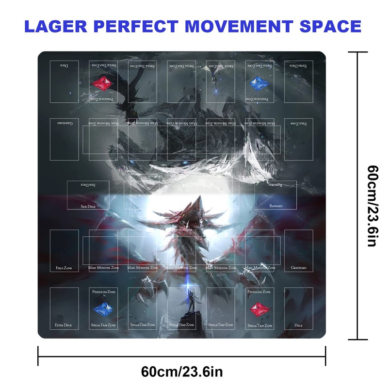 The durable sewing edge is neat and the sewing frame is carefully stitched to ensure long-term use without deformation or falling. Dimensions: 600 * 600 mm / 23.6 * 23.6 inches. The deluxe game mat is perfect for beginners or experienced professionals!