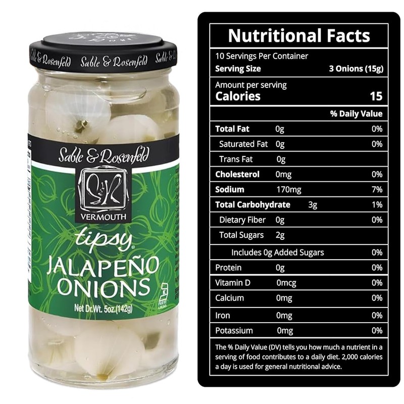 - Sable and Rosenfeld Onions Tipsy Vermouth Jalapeno, 5 oz.