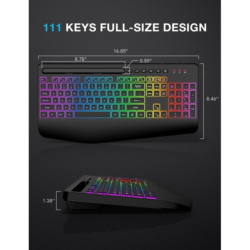 - 54%+ WRIST SUPPORT: The wireless keyboard is equipped with an extra-large wrist rest with a widest edge of 2.8'', which can increase wrist support by 54% and provide you with the most ergonomic Cushioning power and height. This helps prevent common problems like wrist pain that come with long-term computer use.