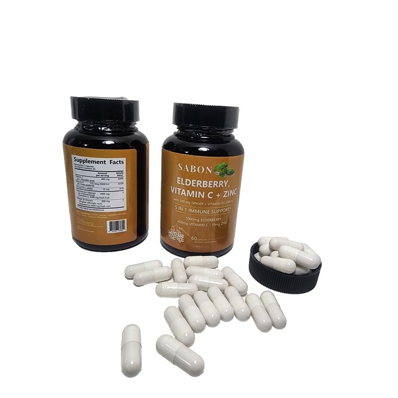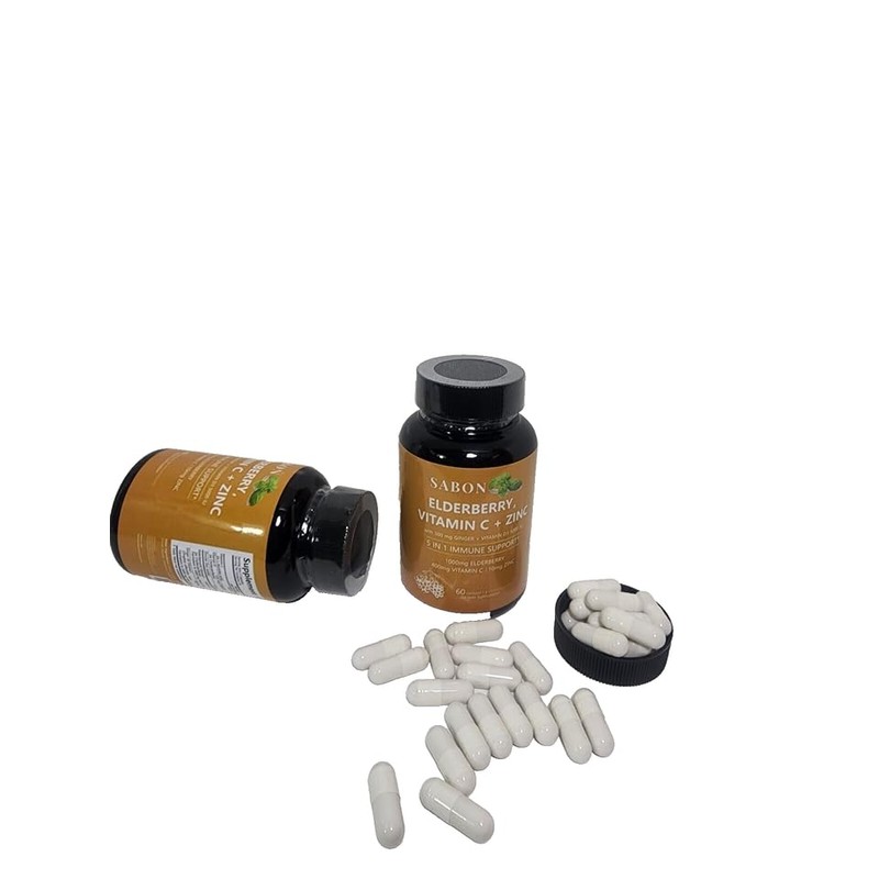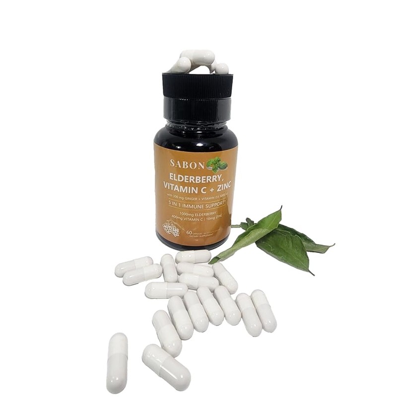 SABON Elderberry Immune Support Tablets, 5 in 1 Immune Support, 60 Count. Vitamin C, Vitamin D, Zinc, Elderberry and Ginger.