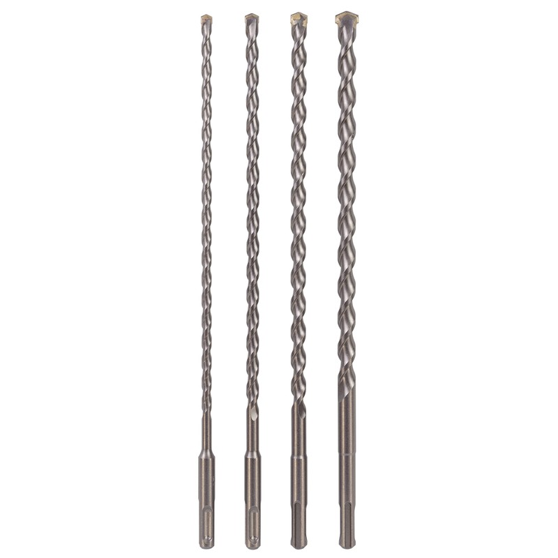 - 4 Piece 12” SDS Hammer Drill Bit Set – Includes: 1/4” x 12”, 5/16” x 12”, 3/8” x 12”, 1/2” x 12”