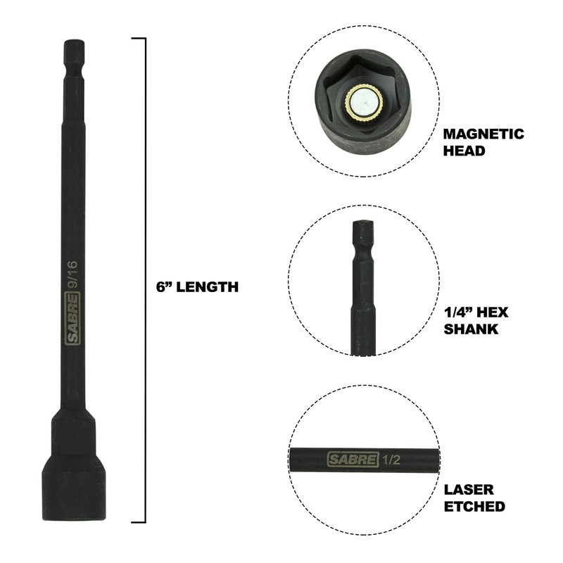 - Strength: Sabers’ 6” long magnetic nut drivers are made to last. Built for impact with chrome vanadium steel and, coated with black phosphate for long lasting rust prevention