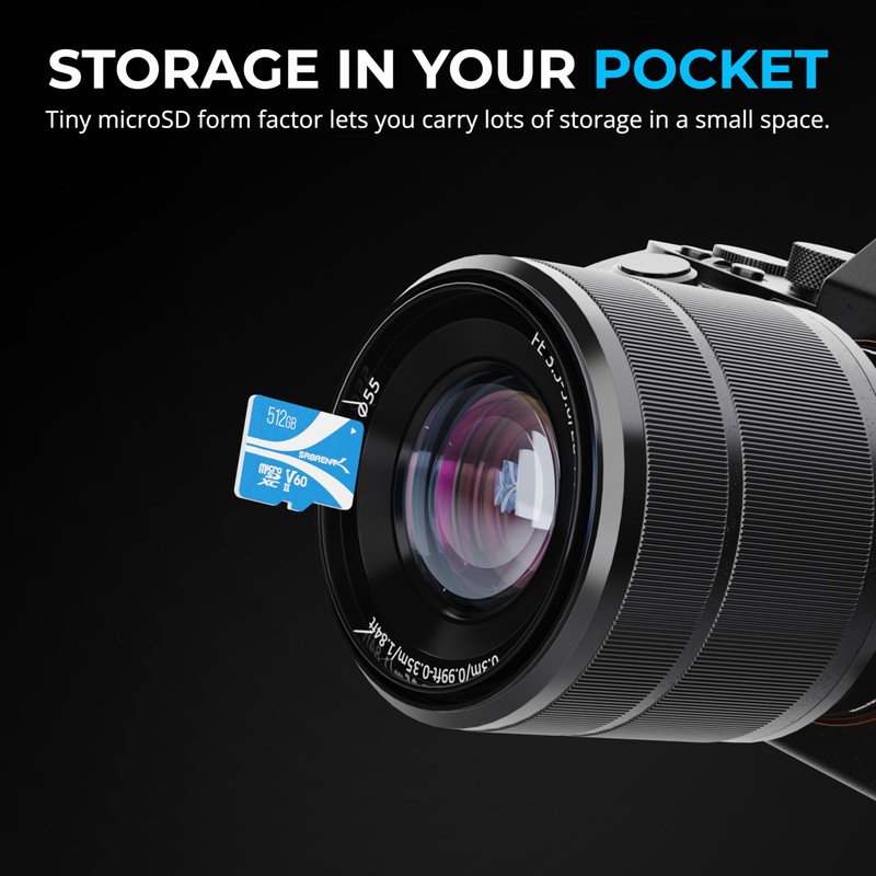 SABRENT Rocket V60 microSDXC Memory Card | 512GB, V60 Specification, 8K Video, A1, UHS-II Compatible (SD-MT60-512GB)